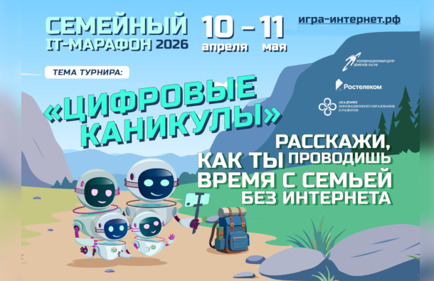 «Ростелеком» и Координационный центр доменов .RU/.РФ объявляют о старте XX Всероссийского семейного ИТ-марафона. К участию в юбилейном сезоне приглашаются семейные команды, состоящие из школьников и их родителей, а также близких родственников, готовых в творческой форме рассказать о своем опыте офлайн-досуга без интернета и цифровых устройств. Соревнования проводятся на сайте проекта «Изучи интернет — управляй им». Результаты будут объявлены в Международный день семьи, который ежегодно отмечается 15 мая.